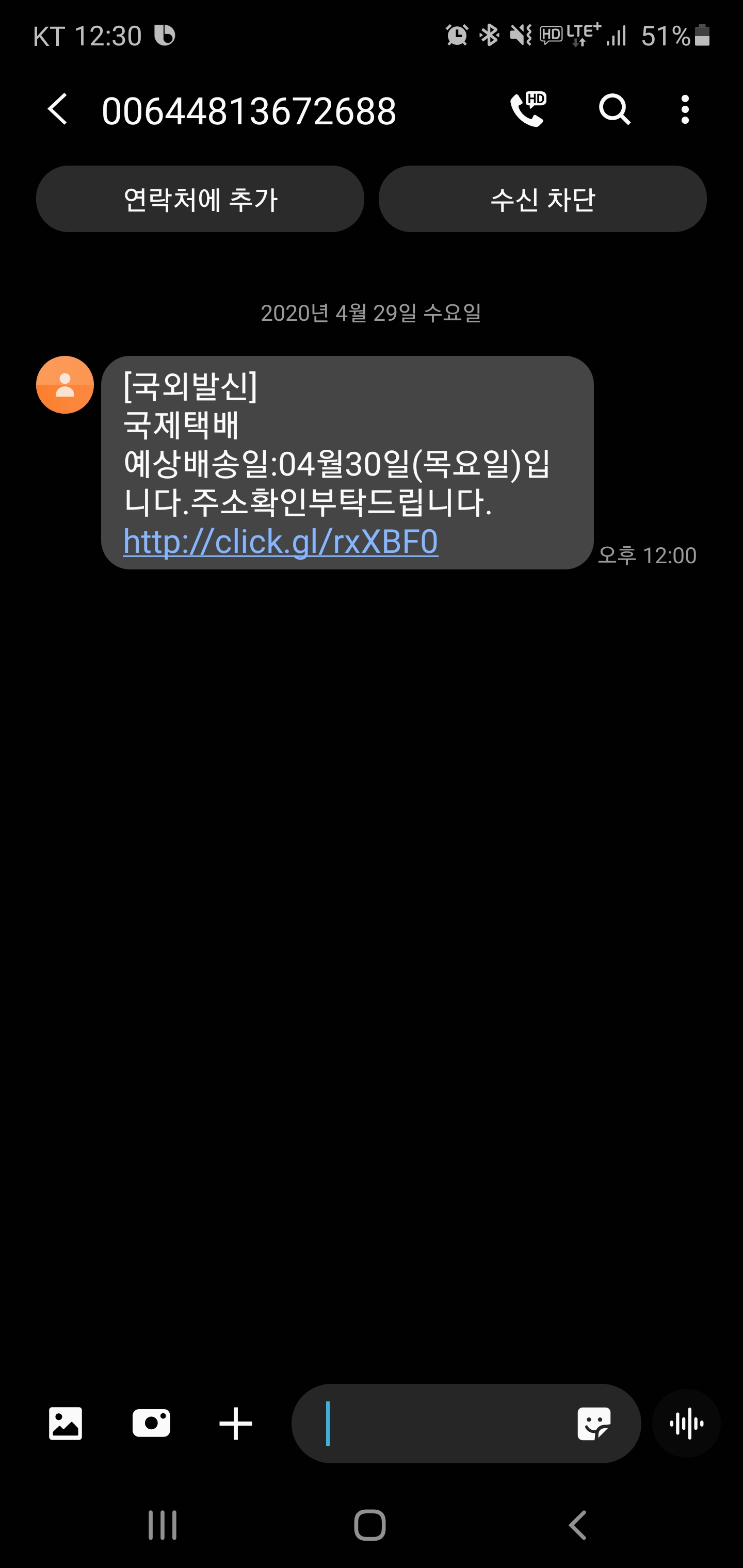 그런데 말입니다. 정말 위와 같은 문자를 받고 나면 링크를 눌러서 확인해보고 싶지 않으세요? 하지만 혹시라도 개인정보 탈취 또는 스마트폰에 악성 프로그램이 설치되어 모든 자료가 날아갈까 봐 불안하시죠?