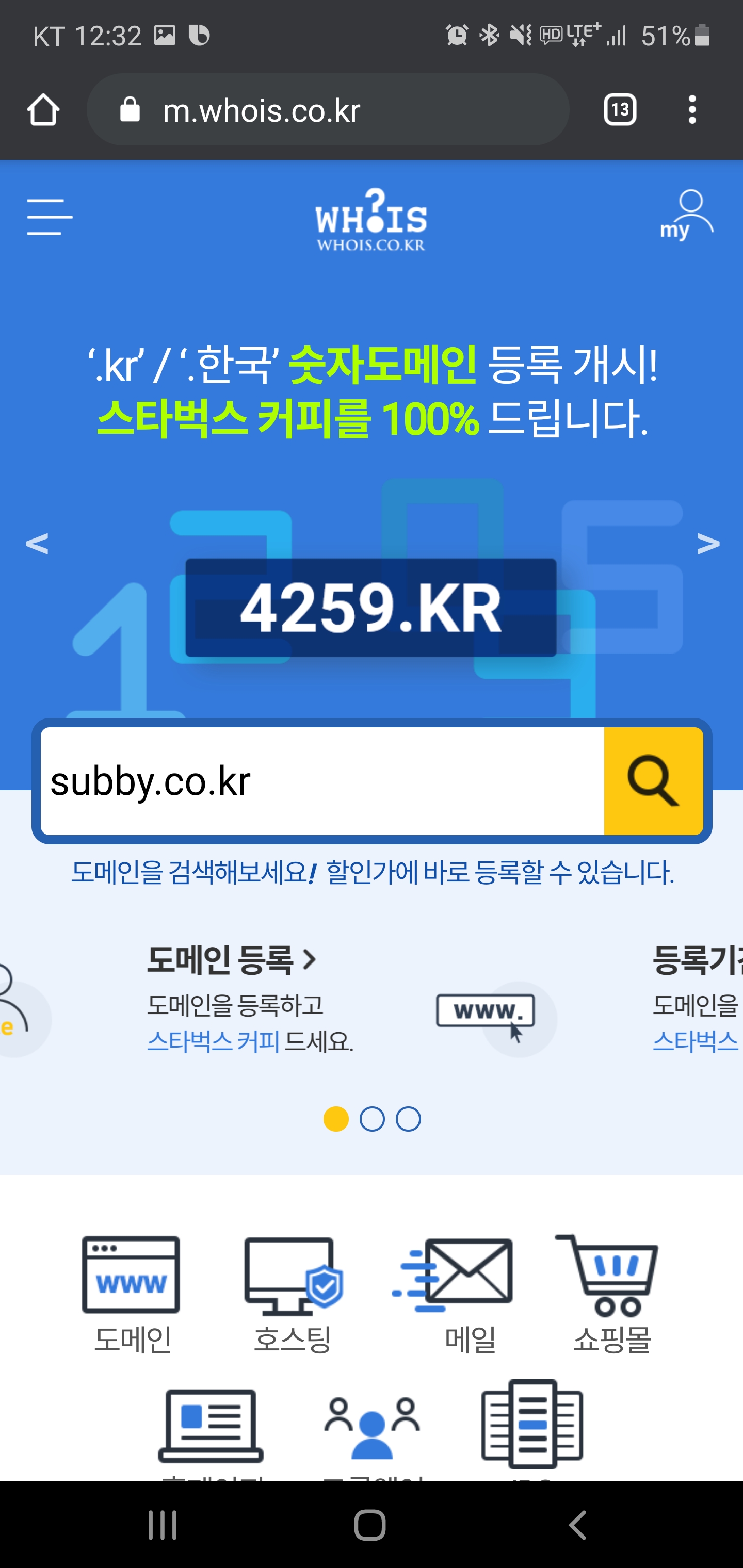 1. WHOIS 사이트를 통한 확인(m.whois.co.kr)