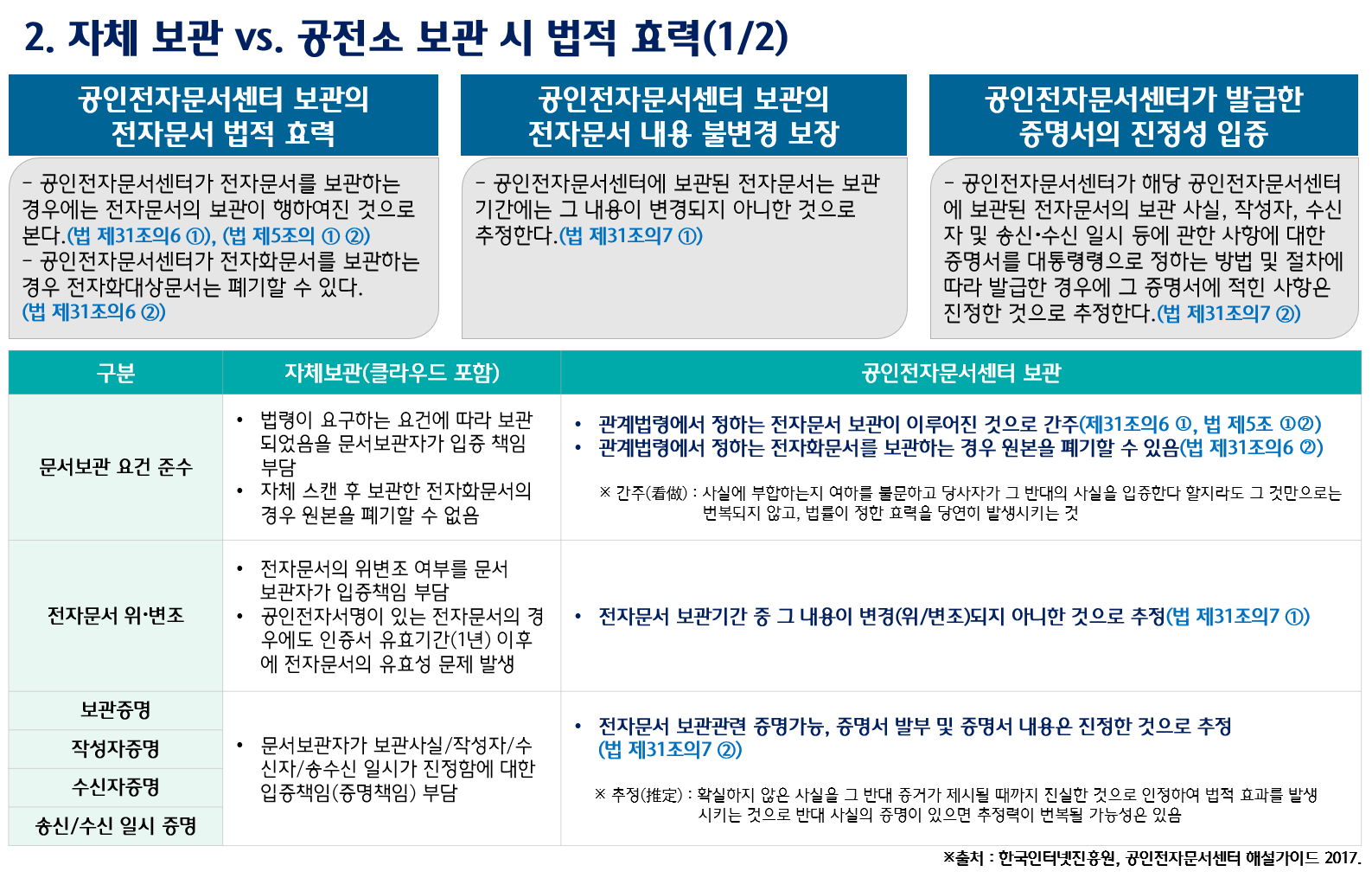 이에, 하나금융티아이 공인전자문서센터에서는 법안 통과에 따른 전자문서의 자체 보관 할때와 공인전자문서센터(약칭 공전소) 보관 시 법적 효력에 대해 비교자료는 제공해 드립니다.(자세한 내용은 자료실 참조)